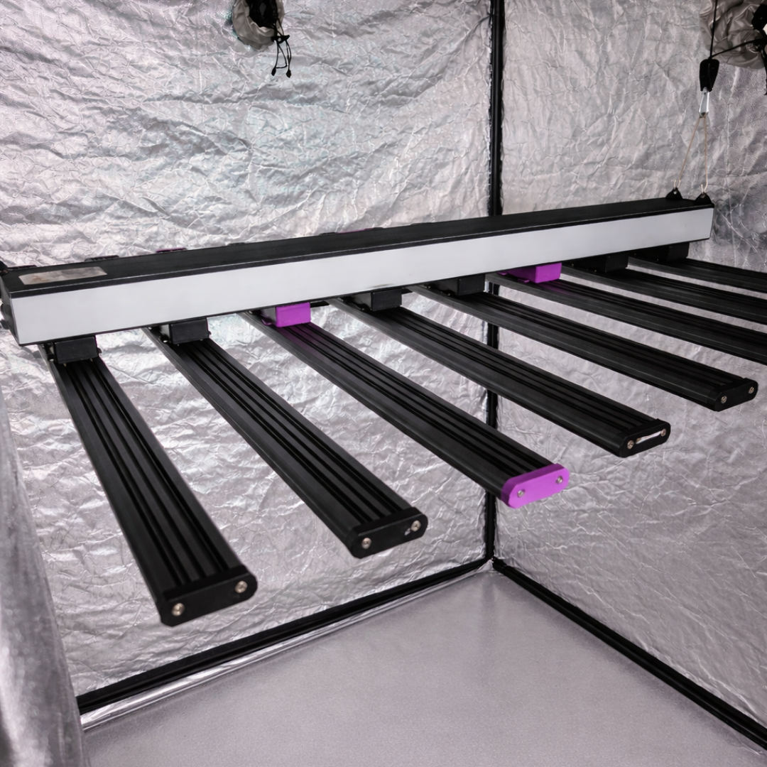 Gracias a su eficiencia de hasta 2.9 μmol/J y un PPF total aproximado de 2000–2100 μmol/s, el Nova X 710W permite alcanzar niveles óptimos de PPFD, logrando plantas más vigorosas, flores más densas y cosechas de alto rendimiento.